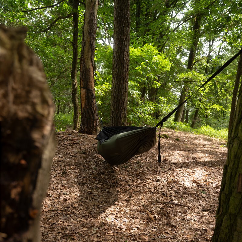 Durch das kleine Packmaß, geringe Gewicht und der Tarnfarbe in oliv-grün, ist diese Hammock ein Must-have für den EDC Rucksack. Doch nicht nur fürs Bushcrafting und Backpacking ist sie sehr gut geeignet, sondern auch für den Campingurlaub, für Pausen beim Wasserwandern und natürlich auch entspannende Auszeiten im Garten.
