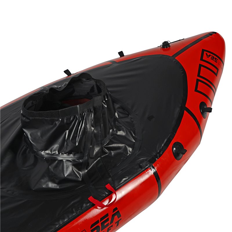 Für optimalen Schutz vor Spritzwasser und schlechtem Wetter verfügt das ExtaSea Rapid 300 Deck Packraft über ein flexibles Verdeck, das Sie je nach Bedarf entweder vollständig geschlossen oder halboffen nutzen können. Dank der integrierten Spritzschürze dringt kein Wasser ein – so bleiben Sie jederzeit trocken.