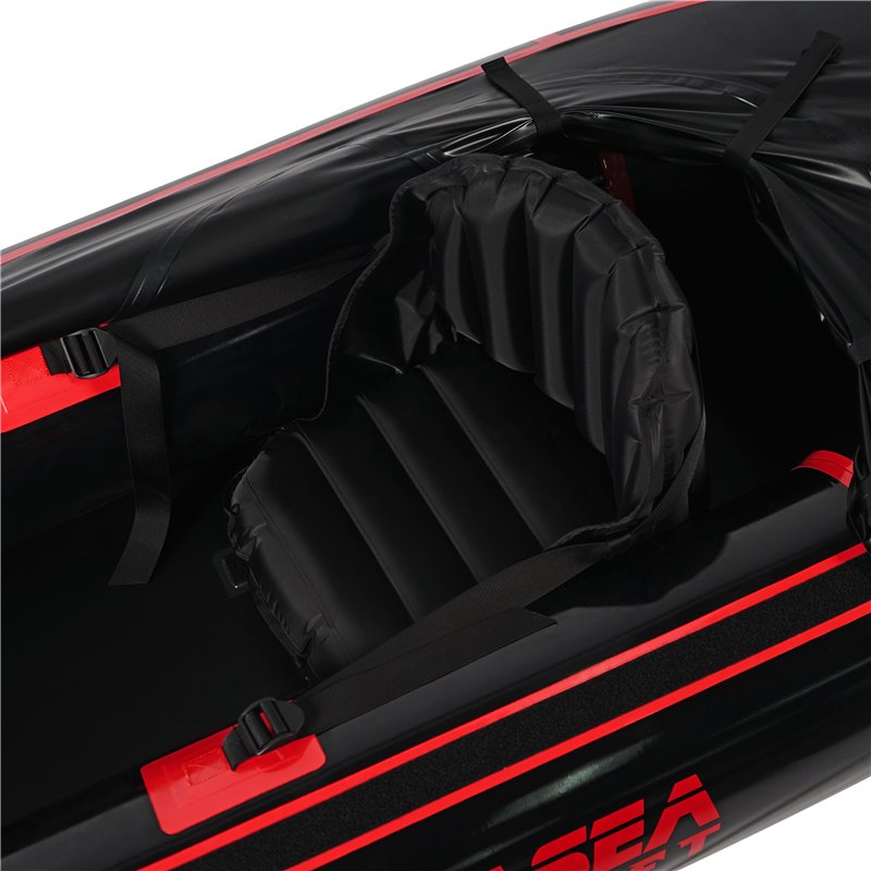 Trotz des schmalen Rumpfes kommt der Komfort nicht zu kurz: Eine optimierte Sitzkonstruktion sorgt dafür, dass Sie nicht zwischen den Seitenschläuchen eingeengt werden. Die geringere innere Breite wird durch das komfortable Sitzkissen ausgeglichen, das reichlich Platz bietet und eine bequeme Fahrt garantiert.