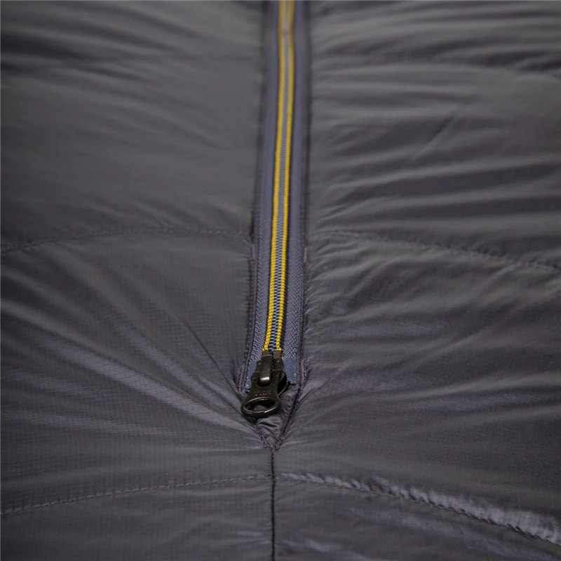 Die schräge Boxkammern-Konstruktion sorgt für maximale Wärme, verringert das Packmaß und verhindert ein Verrutschen der Daune, Kältebrücken werden vermieden und sorgen somit für erholsamen Schlaf. Dank des anatomisch geformten Fußteils mit vier Kammern bleiben die Füße schön warm. Die Kapuze besteht aus fünf Kammern, die für größtmöglichen Komfort und eine optimale Verteilung der Daune sorgen.
