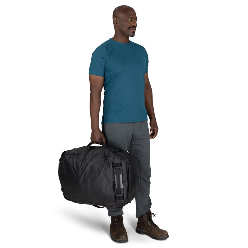 Eine große Duffel-Reisetasche für richtig viel Ausrüstung, mit einem außergewöhnlich bequemen Tragesystem und nach Bedarf einsetzbaren Schultergurten mit einstellbarem Brustriemen.